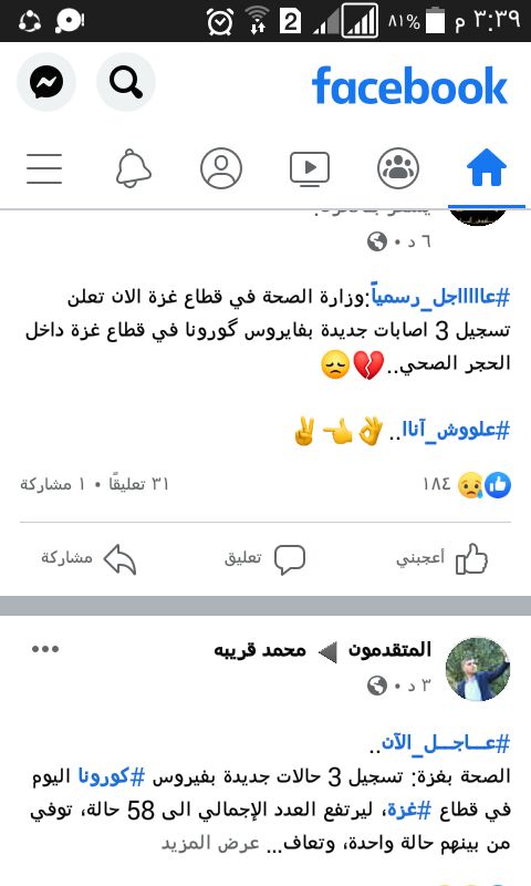 من ٣٠ الى ٥٠ حاله كارونا فى غزة الليلة