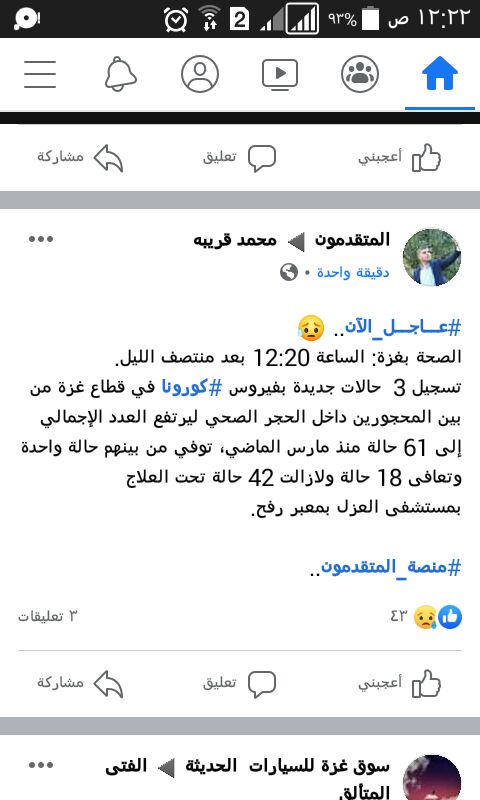 حاليا فى قطاع غزة ٤٩ حالة كورونا