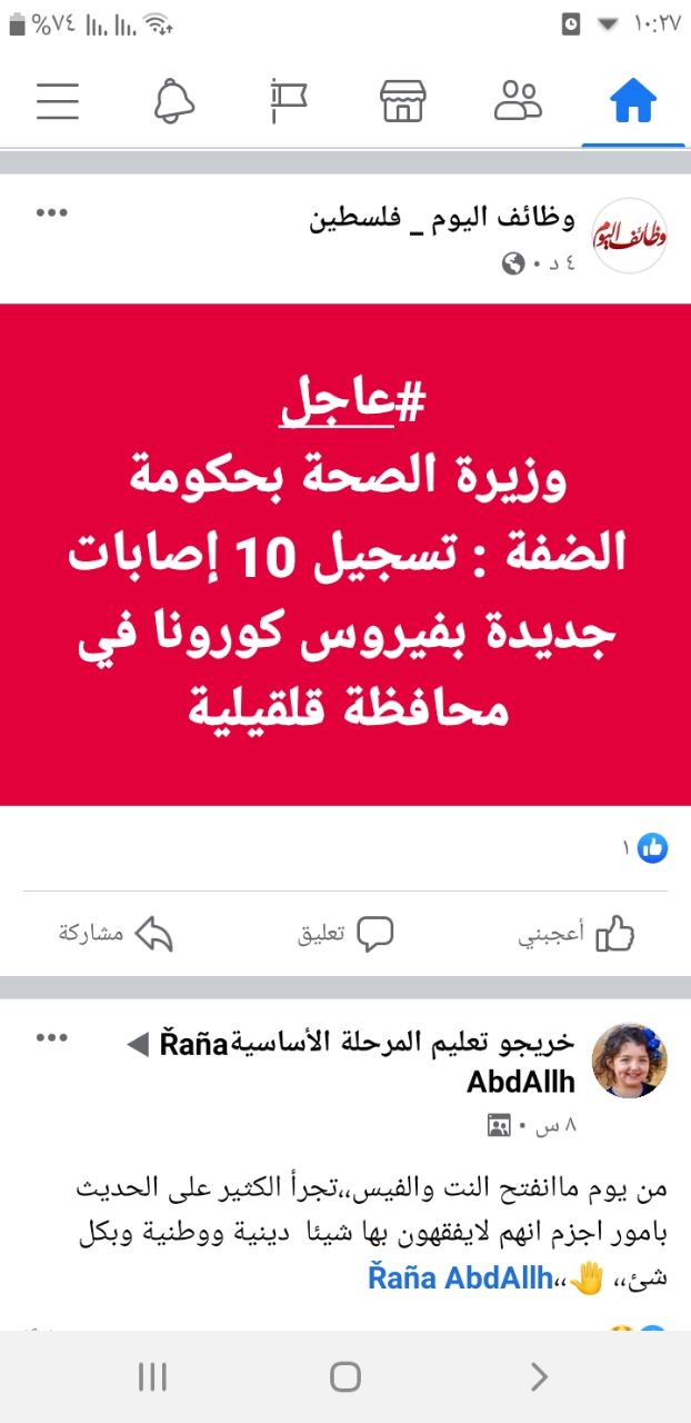 تسجيل إصابة جديدة بفيروس كورونا في بيت أولا لشاب 36 عاما مخالط لمصاب سابق ، ما يرفع حصيلة الإصابات في فلسطين إلى 615 حالة. -