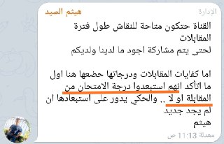 القناة حتكون متاحة للنقاش طول فترة المقابلات