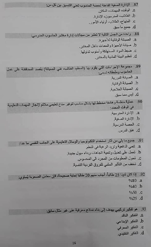 ممكن اختبار الحاسوب بعد اذنكم