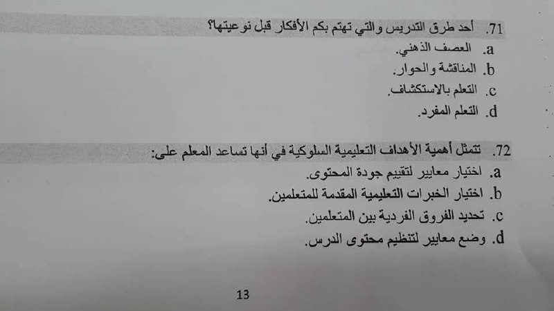 يا جماعة الخير الآن التربية كم سؤال بالضبط في الاختبار ؟