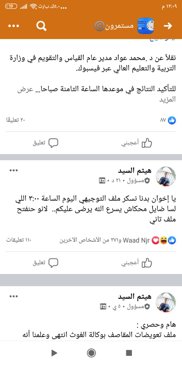 يا إخوان بدنا نسكر ملف التوجيهي اليوم الساعة ٣:٠٠ اللي لسا ضايل محكاش يسرع الله يرضى عليكم.. لانو حنفتح ملف تاني