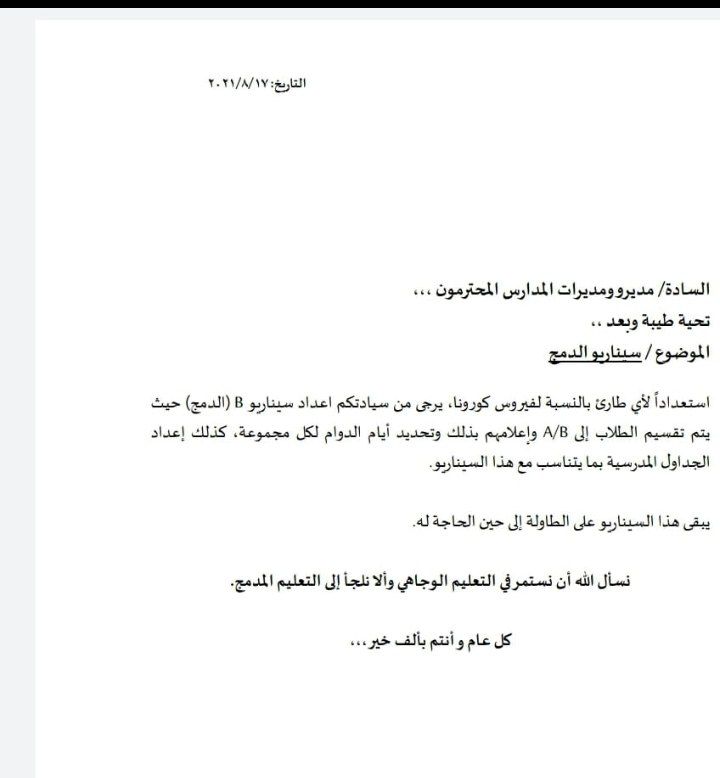 ولكن الادارة بلغت ببقاء الوضع على كما العام الماضي في حال التوجه للتعلم عن بعد