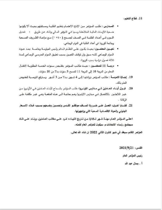 ▪️وسيتابع المؤتمر معالجة هذا الانقسام بكل جدية وحزم حفاظا على حقوق العاملين وكي يبقى المؤتمر رمزا لقوة الاتحادات وهيبتهم -