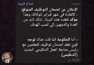 كل الجهود تصب في تثبيت الشواغر لأن هناك حالة ارباك شديدة بالمدارس خصوصا ان اوائل القائمة يعملون بالحكومة