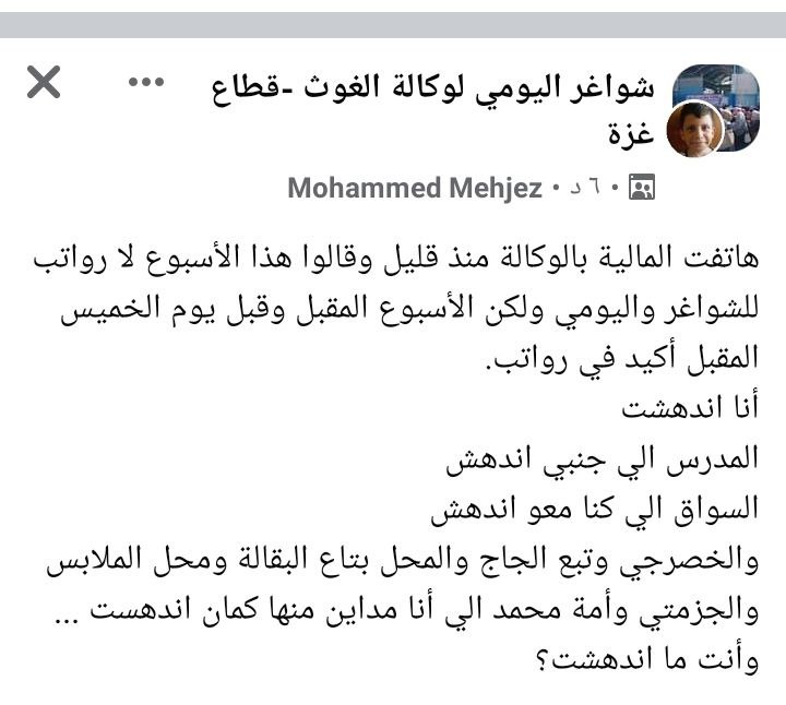 هاتفت المالية بالوكالة منذ قليل وقالوا هذا الأسبوع لا رواتب للشواغر واليومي ولكن الأسبوع المقبل وقبل يوم الخميس المقبل أكيد في رواتب.