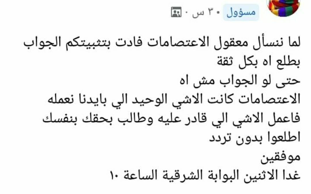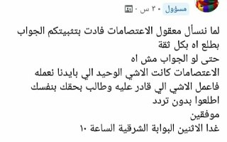 هم كل مرة بيكتبوا الشرقية وبيعتصموا عالبوابة اللي عند الجامعة😁