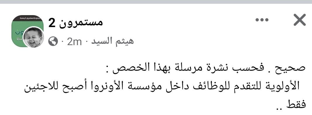 #الأولوية للتقدم للوظائف الداخلية والخارجية داخل مؤسسة الأونروا للاجئين فقط ..