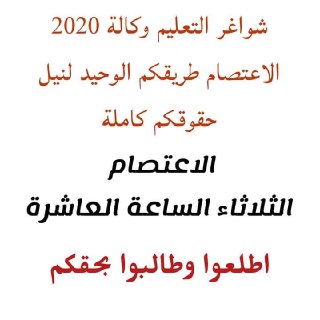 فرصتكم القوية لإيصال صوتكم في الاعتصام الحاشد لقائمة 2020 الذي يحمل عنوان " #لا_للمماطلة .. #لا_لأنصاف الحلول .. #نعم_للتثبيت_وفق_قرارات_المؤتمر_العام "