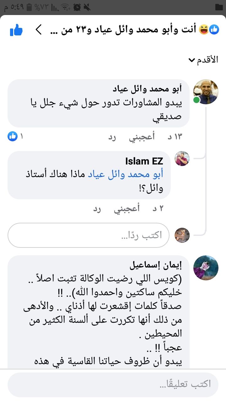 .. الملف تحرك أمس كثيراً لصالحنا.. بقي رهان المسؤولين (قالوها حرفياً) على اعتصام اليوم.كما قال أحدهم سيكون يوم مفصلي.هل تهون عليكي زميلاتك المظلومات.هل تهون عليكي سنوات التعب والسهر؟؟!ننتظرك اليوم الساعة ١١.جيبي ولادك وتعالي وجودهم يوضح حجم معاناتنا،ويحرك ضمائر اصحاب القرار.وما النصر الا صبر ساعة.على الله توكلنا. -