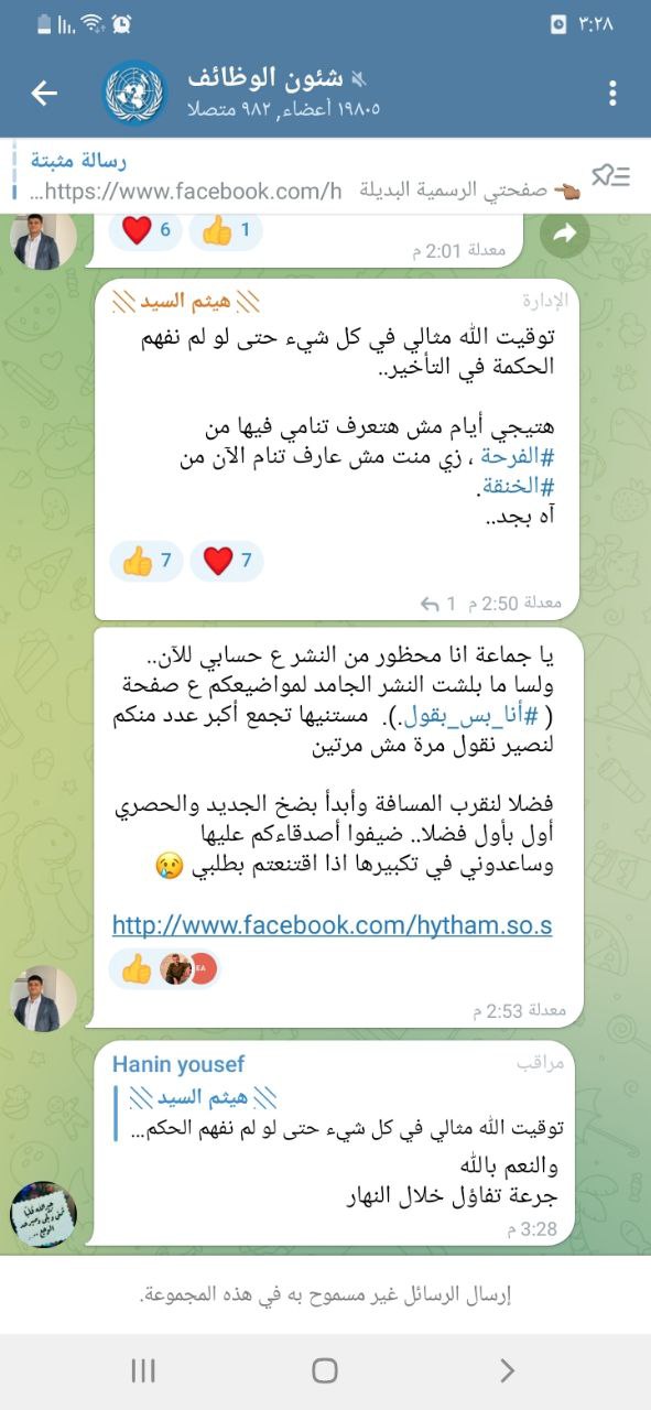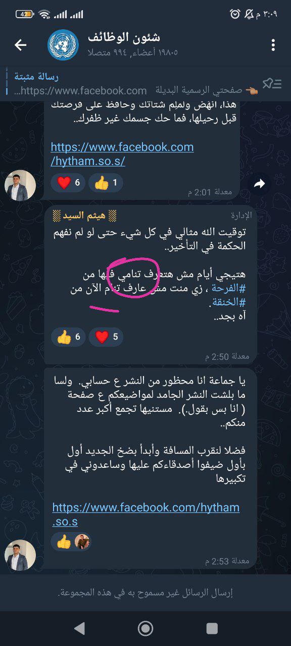 من جانب الاستعداد لكل ما هو محتمل ان يحدث في قادم الايام واخص بالذكر تخصص اللغة الانجليزية ، قمت بعمل مجموعة تلغرام تحتوي على اسئلة منوعة تخص اللغة الانجليزية وتحاكي اختبارات السنوات الماضية فعلى من يريد الاستفادة بعد اذن صاحب المجموعة طبعا وبعد اذن جميع الادمنية في هذه المجموعة الطيبة