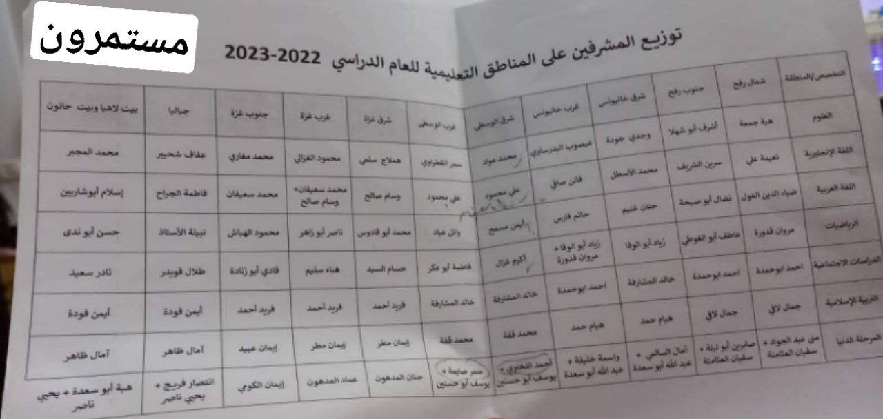 حد معاه جدول حضور مشرفين جنوب غزة؟!