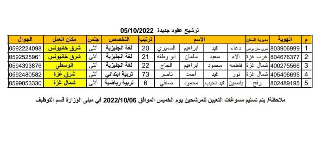 هدول تم ترشيحهم من قبل وزارة التربية والتعليم بغزة