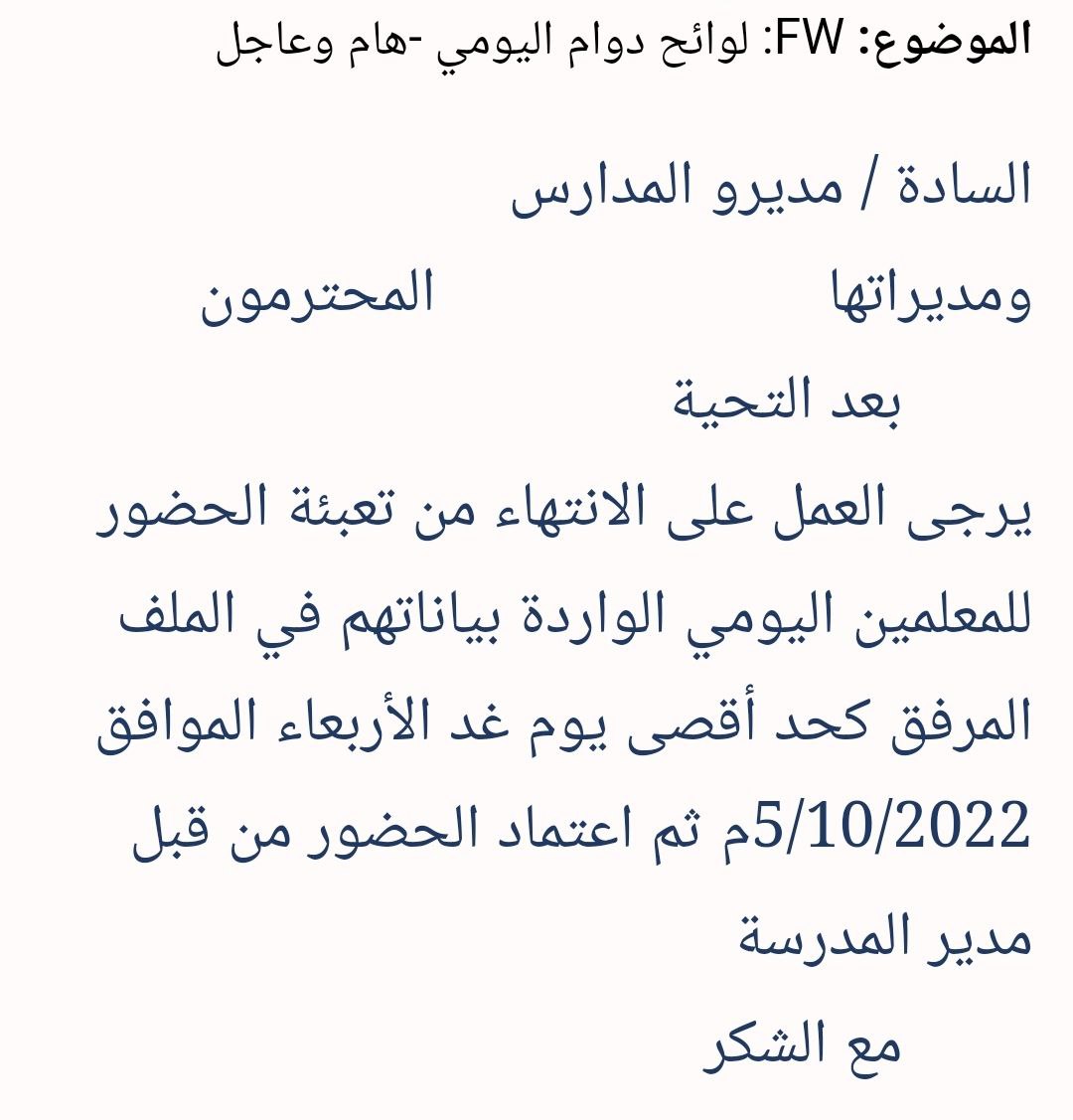 واحنا كمان لوائح دوامنا ما تم تعبئتها