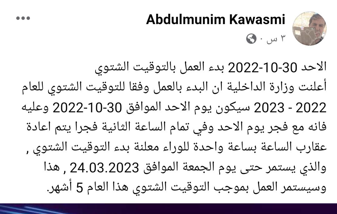 أنا قرأت في صفحة أنه من الأحد توقيت جديد