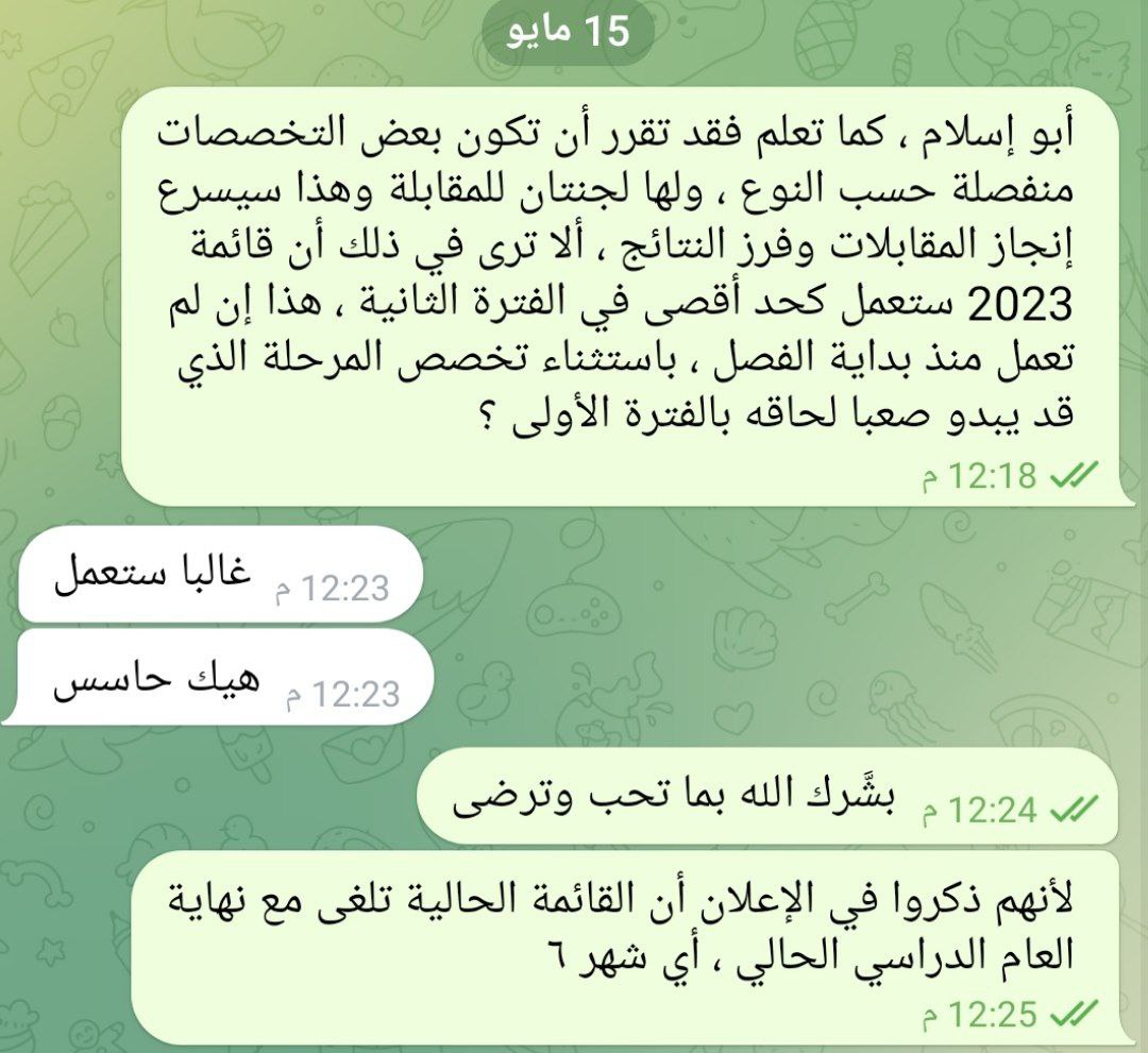 كلامه واضح بعد الانتهاء من عملية الفرز سيتم اقرار المواعيد وكل تخصص اله موعده المحدد