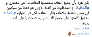 لأنو بكفي توتر في ناس تعبت واجتهدت ومنهم لهم أقارب ومنهم مواطنين وكل حد بضل يفتي وفي ناس بتسدق وبتنقهر -